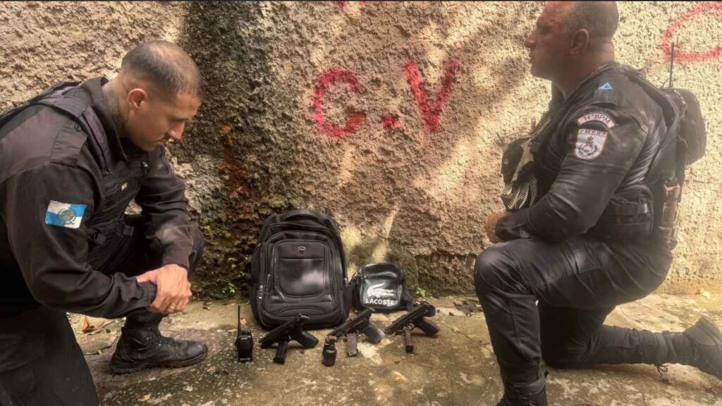 Durante a operação, os policiais apreenderam três pistolas, um rádio transmissor e uma granada. A ocorrência foi encaminhada à 34ª DP (Bangu), onde os suspeitos foram autuados.