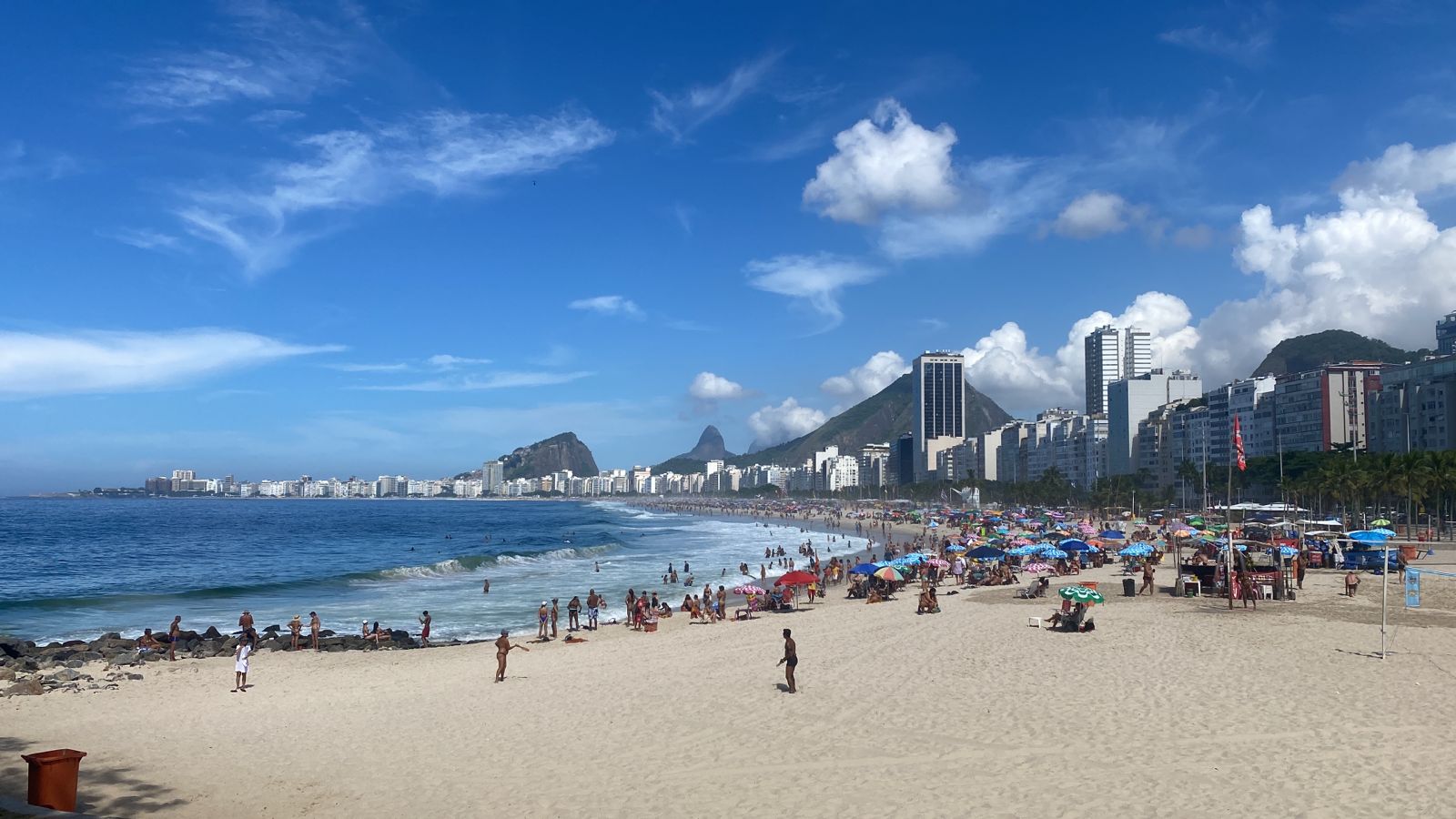Na praia do Leme, na Zona Sul do Rio, apesar dos termômetros marcarem 28°C, na manhã deste sábado (18), a sensação térmica passa dos 30ºC.
