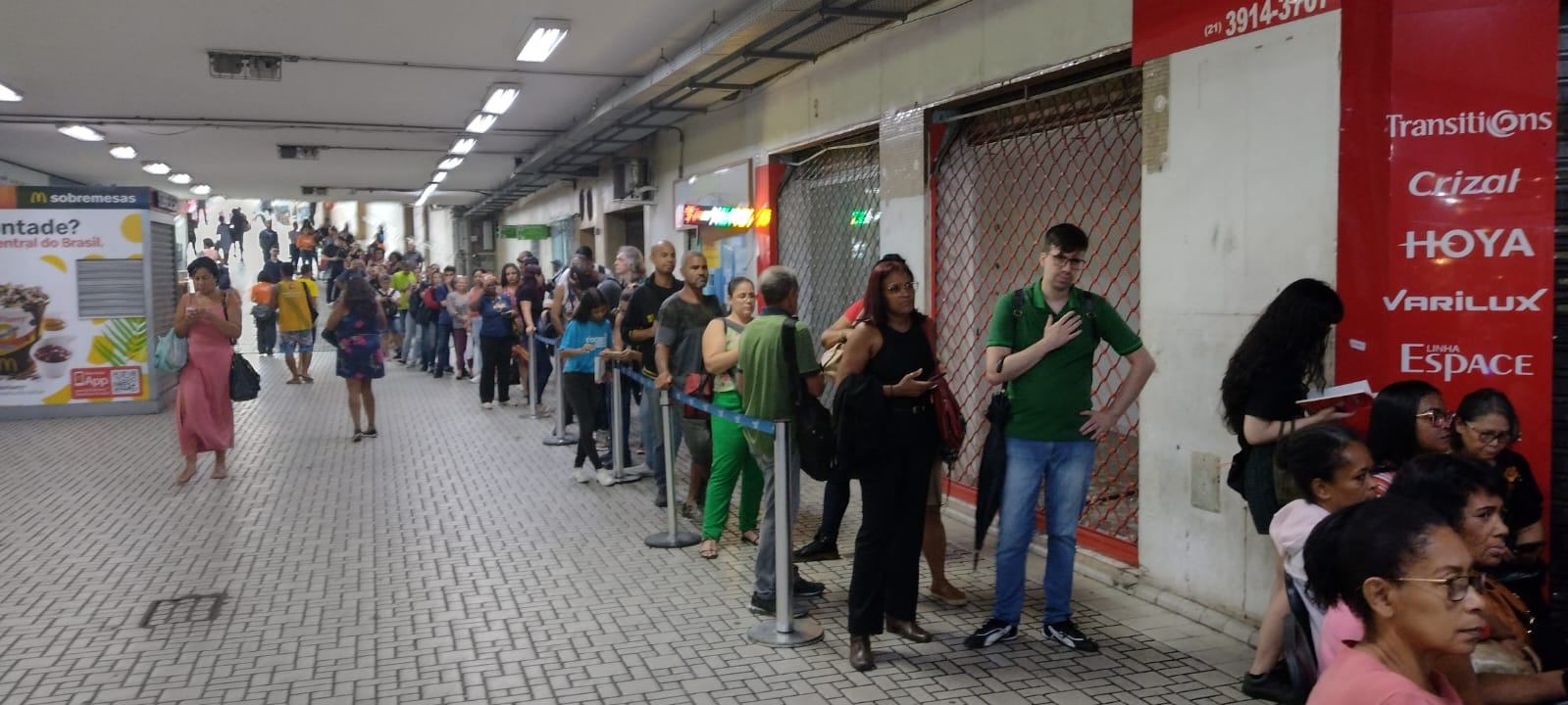 A loja da Riocard Mais amanheceu, nesta quarta-feira (08), com fila e grande movimentação na Central do Brasil, no Centro do Rio. No último dia, antes do reajuste da passagem que irá nesta quinta (9) para R$ 7,40, muitas pessoas vêm buscando se cadastrar no Bilhete Único Intermunicipal (BUI) para adesão à tarifa social de R$ 5.