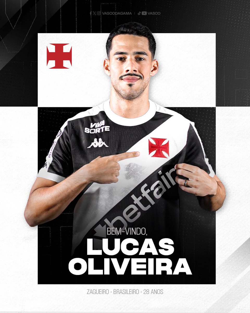 Vasco anuncia Lucas Oliveira, terceiro nome oficializado para 2025