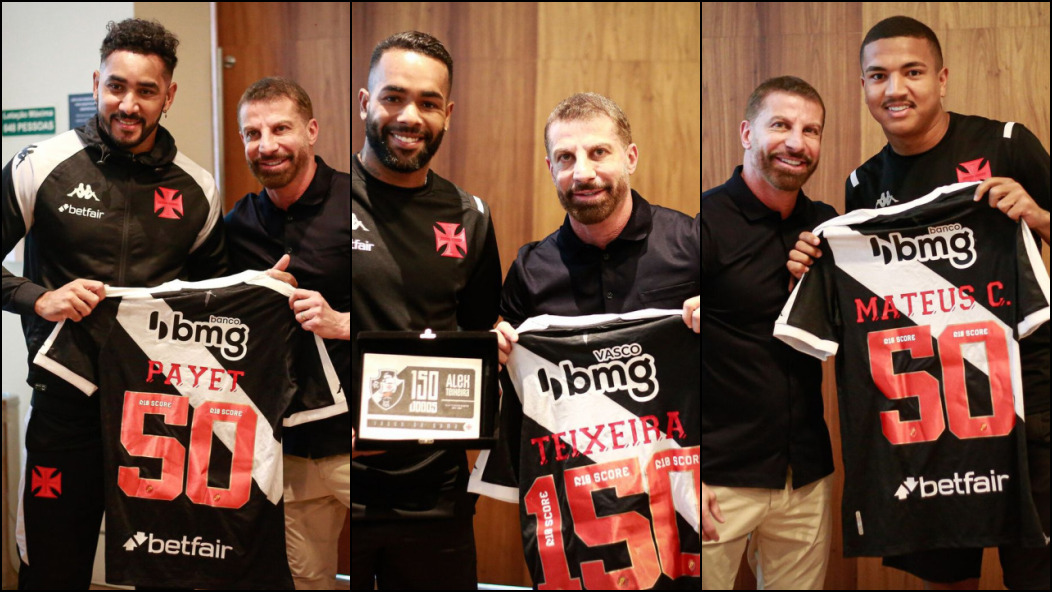 Vasco presenteia três jogadores por marcas históricas pelo clube