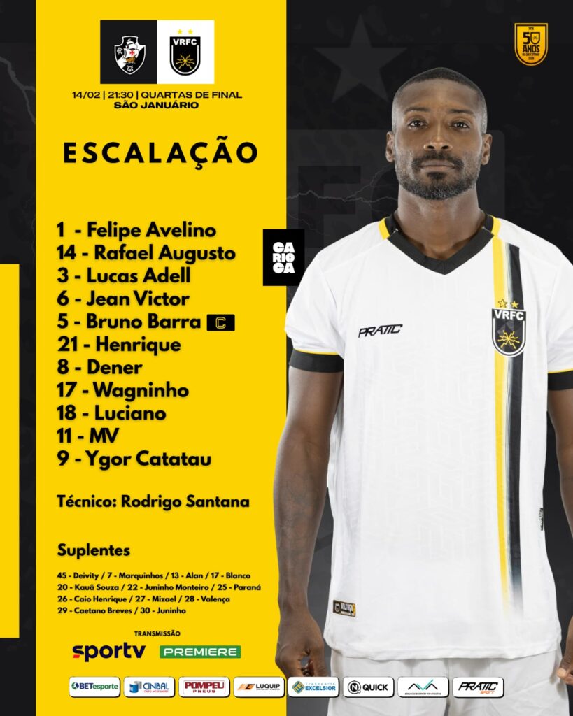 Confira as escalações de Vasco e Volta Redonda