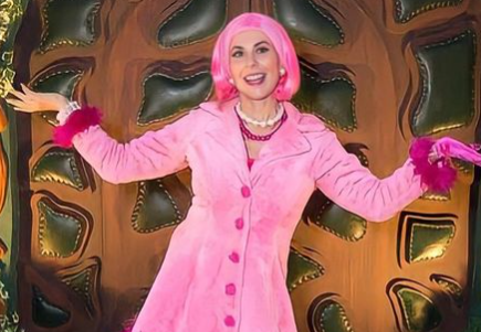 Vestida de rosa, Angela Dippe comemora 28 anos do ‘Castela-Rá-Tim-Bum’