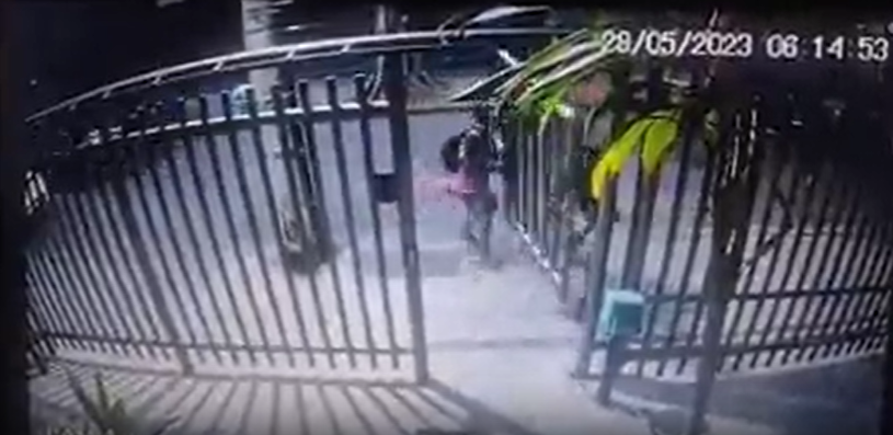 Nas imagens que circulam em redes sociais, é possível observar pelo menos dois homens retirando o material. Toda a ação durou em média 17 segundos. Em seguida, os dois saem pela rua carregando o portão.