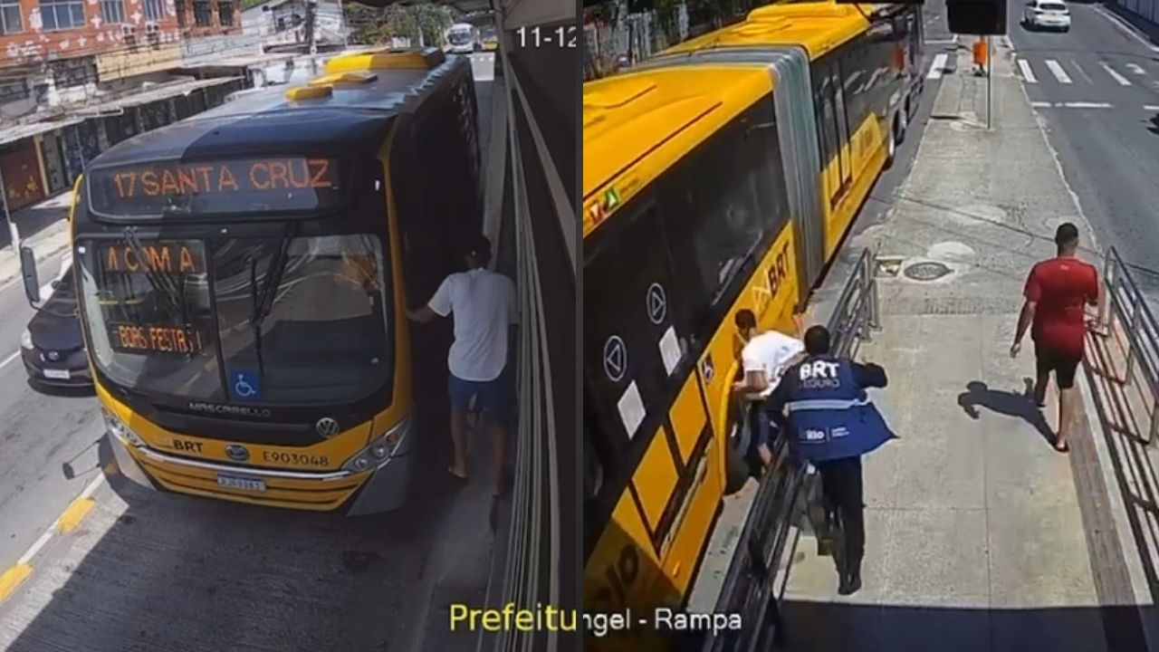 Agentes do programa BRT Seguro apreenderam um adolescente na tarde desta quinta-feira (11) na Estação Gastão Rangel, do corredor Transoeste, em Santa Cruz, na Zona Oeste do Rio. A abordagem começou após o jovem invadir a plataforma sem pagar a passagem. Ao perceber a aproximação dos agentes, ele desceu da estação e tentou fugir, mas foi detido pouco depois na Rua Felipe Cardoso.