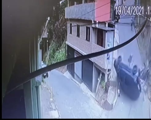 Na queda, o automóvel chegou a atingir a varanda de uma casa, mas nenhum morador da residência ficou ferido.
