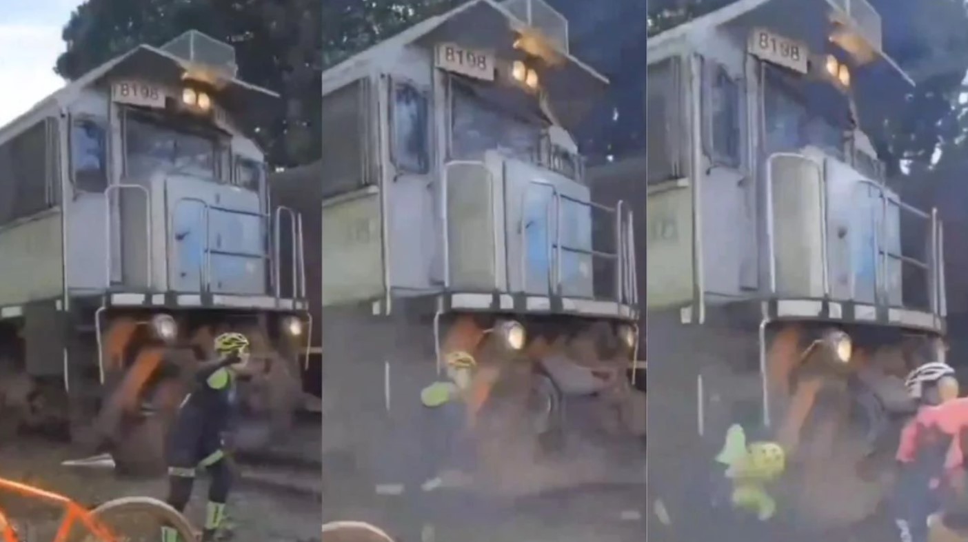 Vídeo: ciclista é atropelada por trem ao tentar tirar selfie em MG