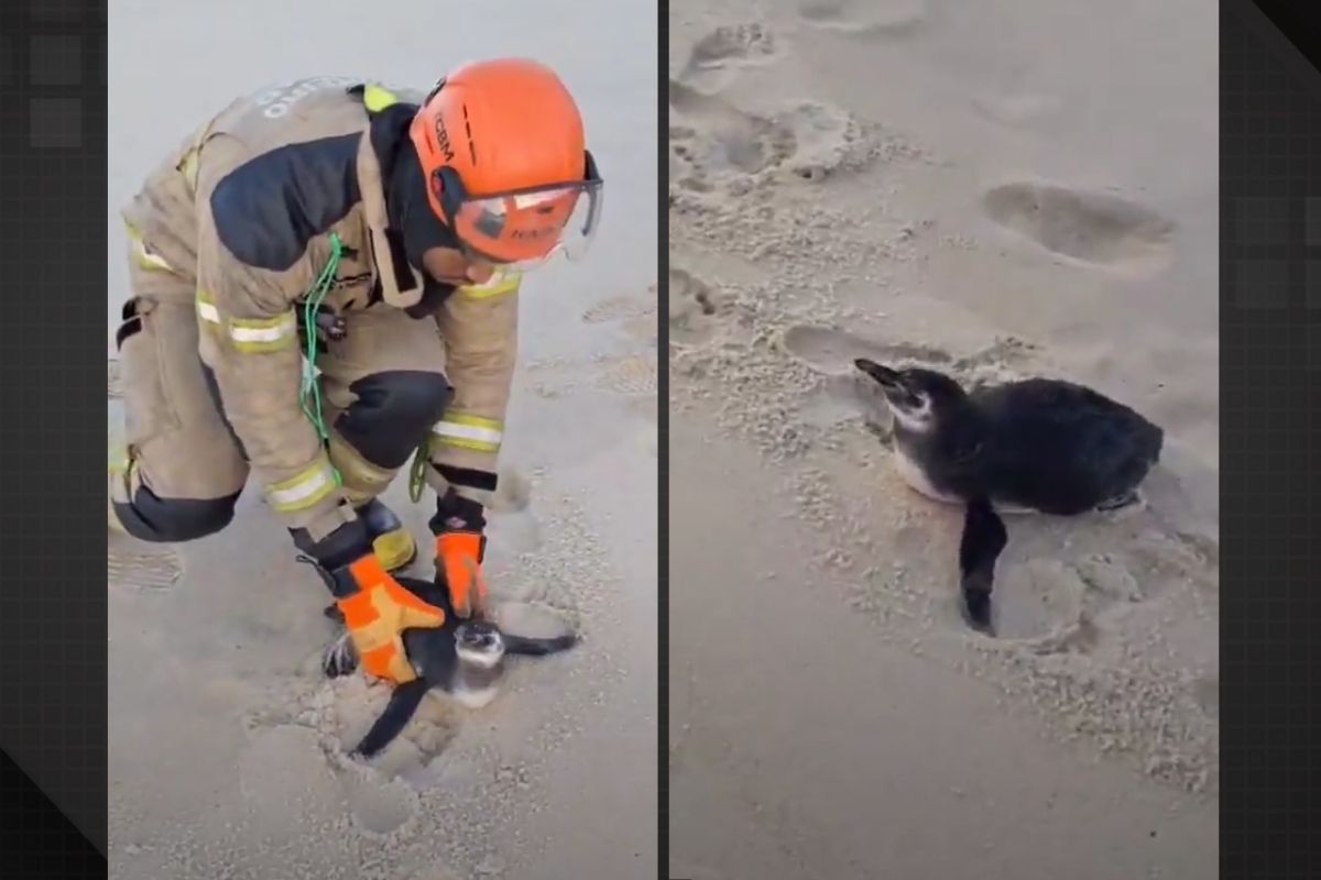 Vídeo: Corpo de Bombeiros resgata pinguim na Praia de São Conrado