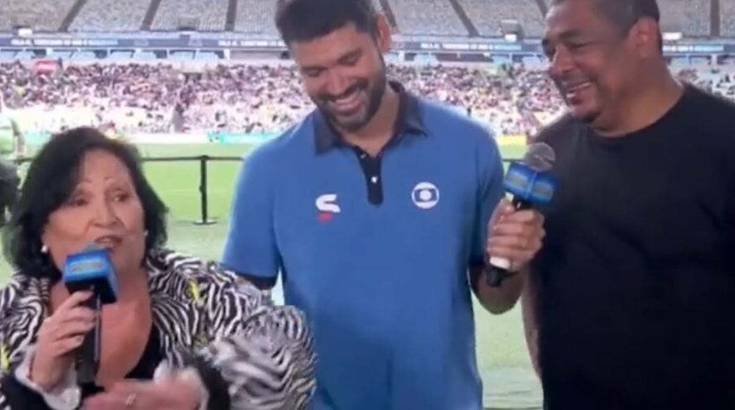 Dona Déa Lúcia, mãe do falecido humorista Paulo Gustavo, brincou com o ex-jogador Vampeta neste domingo (26), no Maracanã, antes do jogo solidário para arrecadação de donativos para as vítimas das enchentes no Rio Grande do Sul. Dona Déa relembrou quando o ex Corinthians posou nu para a revista masculina G Magazine, em 1999.