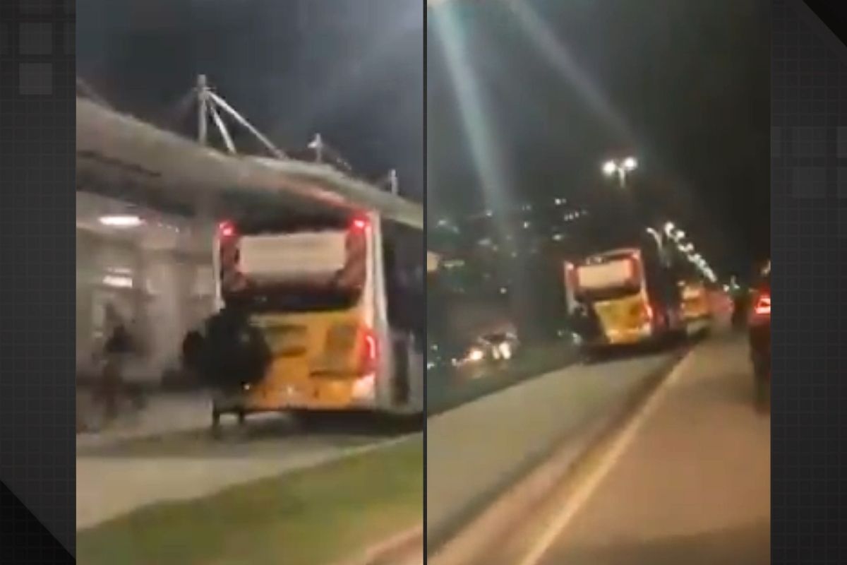 Vídeo mostra homem de patins pegando “carona” em BRT na Zona Oeste