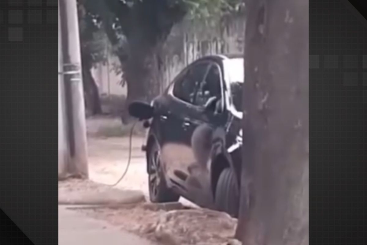 Um vídeo publicado no último sábado (23) flagrou um carro elétrico sendo carregado clandestinamente em um poste público no Recreio dos Bandeirantes, na Zona Oeste do Rio.