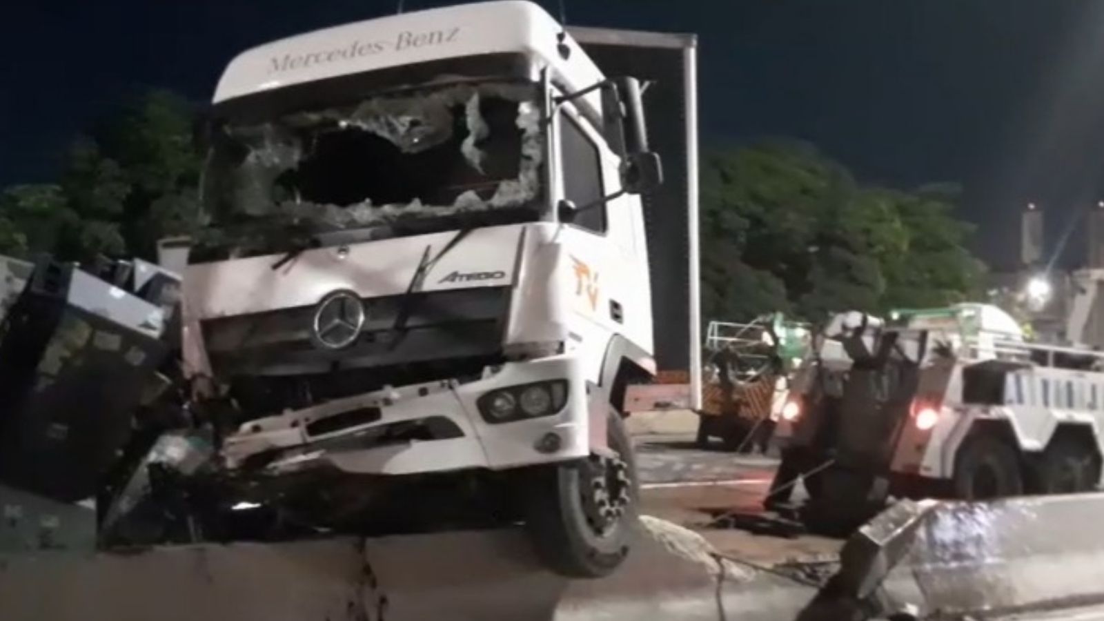 Vídeo: motorista passa mal, tomba carreta e interdita Avenida Brasil