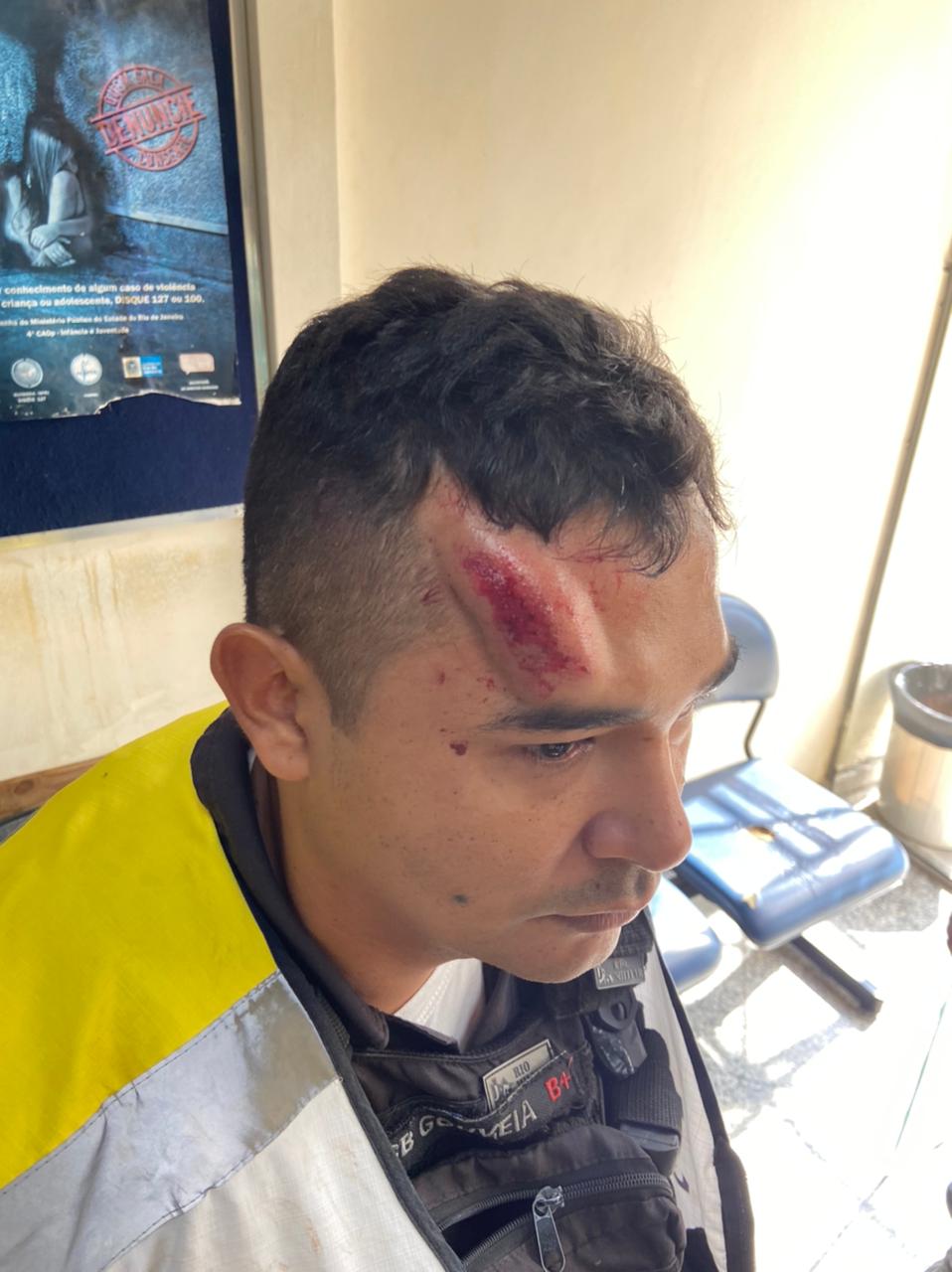 Agente precisou ser socorrido por um colega de farda que atirou para o alto para dispersar confusão