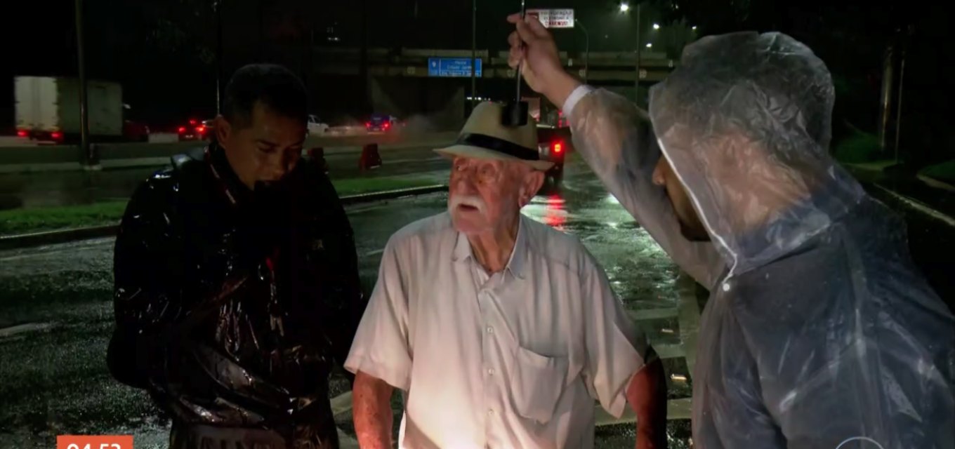 Durante a cobertura dos temporais que atingiram a cidade de São Paulo, uma cena que foi ao ar no telejornal “Hora Um”, da TV Globo, na madrugada desta segunda-feira, chamou a atenção do público. Tudo começou quando o repórter Rômulo D’Avila entrou ao vivo e notou, logo no começo da sua participação, que um idoso necessitava de ajuda.