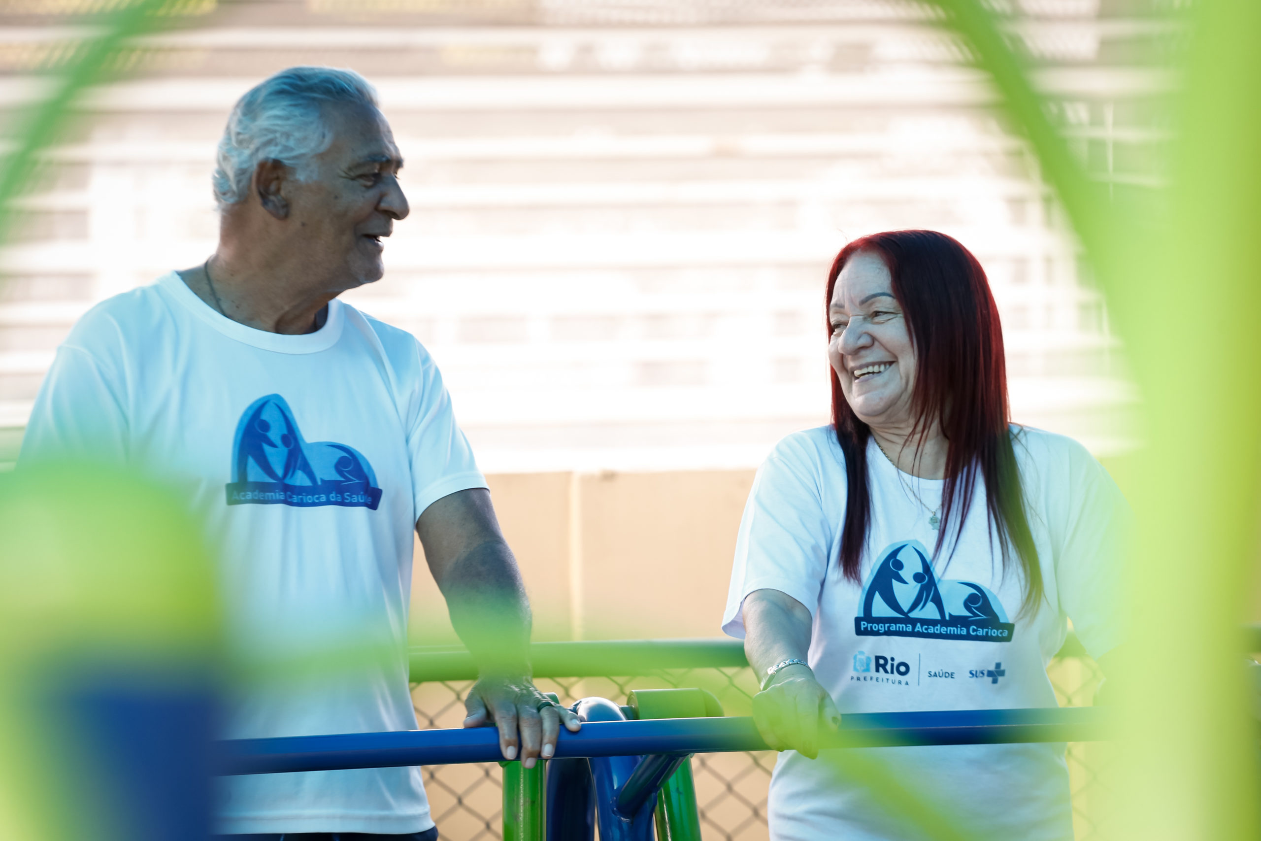 O casal de aposentados Luzia Soares e Francisco Amorim, de 76 e 79 anos, respectivamente, se conheceram nas aulas do Programa Academia Carioca do Centro Municipal de Saúde Mário Vitor, em Campo Grande. Mesmo morando há mais de 40 anos no mesmo bairro, seus caminhos nunca haviam se cruzado. Entre as aulas e o grupo de caminhada, veio a aproximação e, de lá pra cá, já contabilizam mais de sete anos juntos, transpirando cumplicidade e companheirismo.