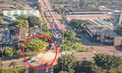 Uma câmera de segurança registrou o momento exato em que um avião modelo King Air F90 caiu na Avenida Marquês de São Vicente, na Barra Funda,...