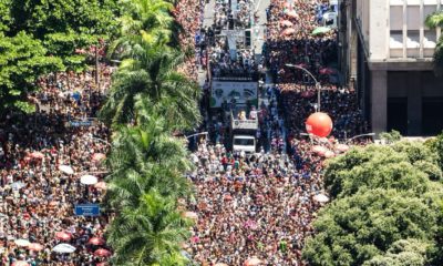 Uma multidão está reunida na manhã deste sábado (18) na Rua Primeiro de Março para o Mega-bloco Cordão da Bola Preta que completa 104 anos de...