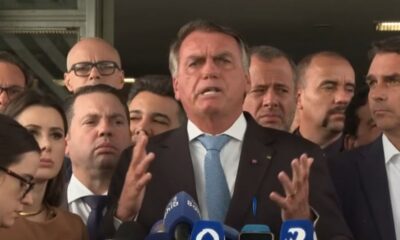 O ex-presidente Jair Bolsonaro (PL) foi interrompido por um trompetista enquanto concedia uma coletiva de imprensa na saída do Senado Federal, nesta quarta-feira (26). O músico...