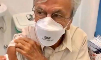 O cantor Caetano Veloso recebeu a vacina contra a covid-19 no Rio nesta quinta-feira (4). “Chegou a data para os da minha idade, tomei a vacina....