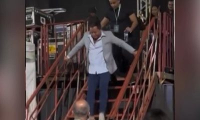 Durante uma apresentação em Pontal, no interior de São Paulo, o cantor Léo, da dupla sertaneja Léo & Raphael, passou por um susto ao ser atingido...