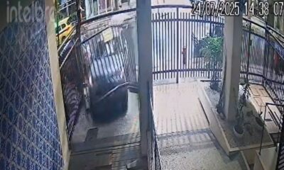 Um carro desgovernado invadiu a garagem de um prédio residencial nesta quinta-feira (24), na Rua Santa Clara, em Copacabana, na Zona Sul do Rio. Imagens de...