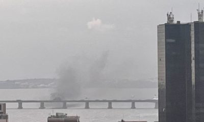 Um carro pegando fogo, nesta quarta-feira (19), interditou os dois sentidos da Ponte Rio-Niterói, na altura da subida do vão central. O Fiat Doblo estava puxando...