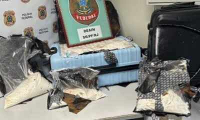 A Receita Federal apreendeu na madrugada desta sexta-feira (14) um total de 9,86 kg de pasta base de cocaína no Aeroporto Internacional do Galeão, no Rio....