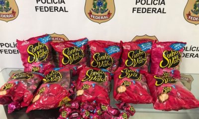 A Polícia Federal prendeu uma francesa, na noite desta terça-feira (25), no Aeroporto do Galeão, com cerca de 8 kg de cocaína no recheio de bombons....