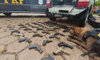 A Polícia Rodoviária Federal (PRF) apreendeu mais de 30 pistolas e dezenas de carregadores durante uma fiscalização na Rodovia Presidente Dutra (BR-116), no Sul Fluminense. A...