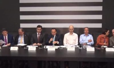 O prefeito Marcelo Crivella, a Secretária Municipal de Saúde, Beatriz Busch, e outros gestores do município, anunciaram, em entrevista coletiva na Cidade das Artes, na Barra...