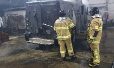 Um veículo blindado do 14ºBPM, o batalhão de Bangu, na Zona Oeste do Rio de Janeiro, pegou fogo na manhã desta terça-feira (23). O Caveirão...