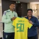 Lateral-direito foi convocado nas últimas duas Copas do Mundo. Jogador recebeu uma camisa comemorativa do presidente Ednaldo Rodrigues
