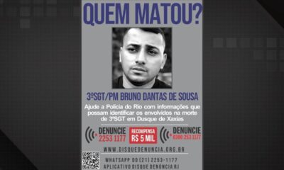 Cinco mil reais é o valor da recompensa do Disque Denúncia para quem ajudar a Polícia a localizar os envolvidos na morte do sargento Bruno Dantas...
