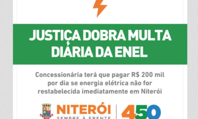 A Segunda Vara Cível de Niterói decidiu, nesta quarta-feira (22), duplicar o valor da multa aplicada à Enel devido a concessionária não ter restabelecido o fornecimento...