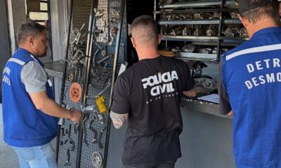 Quatro peças automotivas de veículos roubados foram encontradas por agentes da Diretoria Geral de Desmontagem do Detran e policiais civis da Delegacia de Roubos e Furtos...