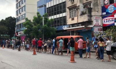 Cerca de 300 pessoas fazem fila, na manhã deste sábado (19), para entrar na agência da Caixa Econômica Federal da Rua Cardoso de Moraes, em Bonsucesso,...