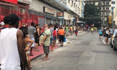 Uma enorme fila foi formada na Rua Cardoso de Morais, em Bonsucesso, na Zona Norte do Rio, onde fica uma agência da Caixa Econômica Federal, na...