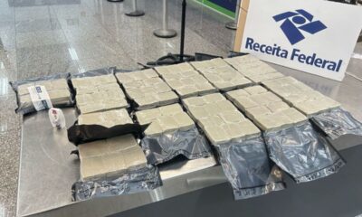 A Receita Federal apreendeu, nesta quinta-feira (21), mais de 21 kg de haxixe no Aeroporto Internacional do Galeão, no Rio de Janeiro. A droga, avaliada em...