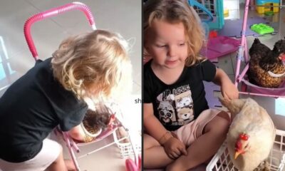 A pequena Beatriz, de apenas 2 anos, arrancou risadas da mãe ao protagonizar uma cena pra lá de fofa: a menina apareceu colocando laços nas galinhas...