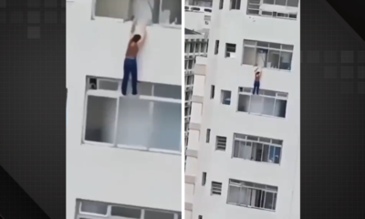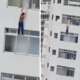 Uma mulher escorregou enquanto limpava uma janela de um prédio e ficou pendurada no 15º andar por quase cinco minutos no Guarujá, em São Paulo. O...
