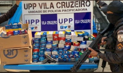 Policiais militares da UPP Vila Cruzeiro apreenderam após troca de tiros, um carro com diversos pacotes de cigarros e uma réplica de pistola, nesta terça-feira. Segundo...