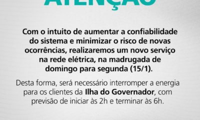 Serviço será realizado entre 2h e 6h, com interrupção da energia