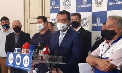 O governador em exercício, Cláudio Castro, durante entrevista coletiva, no Palácio Guanabara, nesta terça-feira se desculpou por ter realizado uma festa de aniversário, em Itaipava, na...