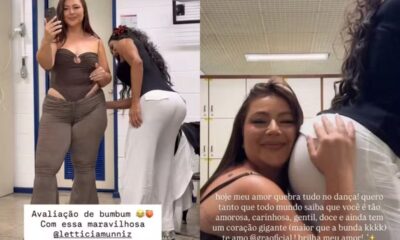 Nos bastidores do Domingão do dia 14, Letticia Munniz, de 35 anos, voltou a brincar com Gracyanne Barbosa, de 41, durante a passagem das duas pelo...