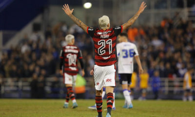 Centroavante rubro-negro marcou três vezes na vitória por 4 a 0 em Buenos Aires e assumiu a artilharia da competição