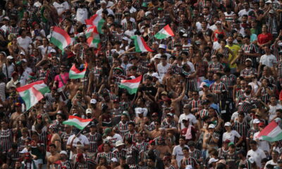 Torcida do Racing faz festa para animar jogadores antes do jogo contra o Flamengo e busca reverter a desvantagem no El Cilindro.