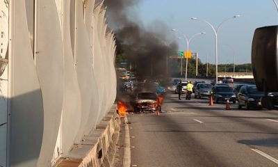 Um carro pegou fogo, na manhã desta segunda-feira (16), na Linha Vermelha, na altura da Ponte do Saber, no sentido Centro. Equipes dos bombeiros e da...