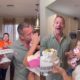 Na hora do parabéns dos 6 anos de Kyara, a bolo escorregou de foi parar no chão