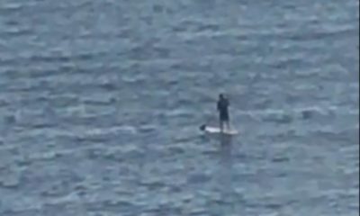 Um praticante de Stand Up Peadle foi flagrado na manhã desta terça-feira (04), na Baía de Guanabara, a cerca de 1km da ponte Rio-Niterói. Ao fundo...