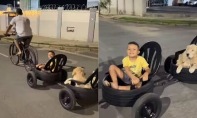Um pai em Minas Gerais viralizou ao levar o filho Ethan e o cachorro Rocky em um trenzinho improvisado durante um passeio pelo condomínio. O vídeo...